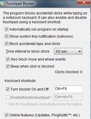 - You can define your own keyboard shortcut to turn blocker On and Off. Just click on the box and press the key combination you want; so that the touchpad blocker will activate.