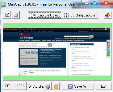 MiniCap also provides its graphical interface for capturing a particular object of an application. Moreover, it is also able to capture scrolling window. This will help you to take full-page screenshot, and not just the visible part.