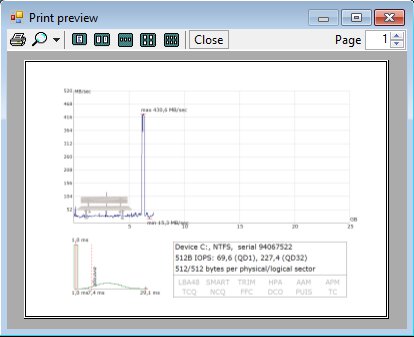 - Disk performance (diagram) can be printed directly or saved as an image