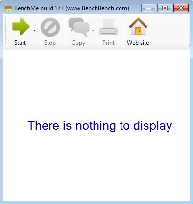 Default interface of BenchMe is pretty sparse, which you can see from the screenshot below. The “There is nothing to display” area down below is where the hard disk benchmark results, once that you start it up, are gonna appear. Toolbar at the top has all the important options that you need for running benchmarks, starting with the Start button, which obviously starts the test.