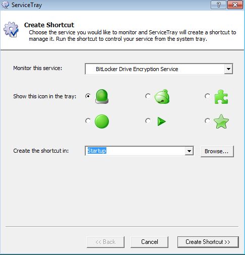 Attached service doesn’t have to be BitLocker, it can be anything you want, and you can also change the icon, there’s up to 6 different icons to choose from so that you can set recognize services more easily, each can have its own system tray icon.