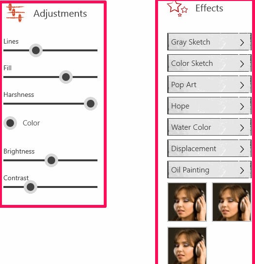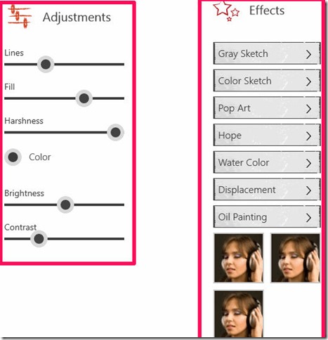 PicSketch is a free photo sketching app for Windows 8 which lets you convert your photos into realistic pencil sketch drawings. This app provides a wide range of effects which can be adjusted as per your choice by using sliders. It contains different effects, like: Grey Sketch, Color Sketch, Pop Art, Hope, Water color, Oil Painting, etc..