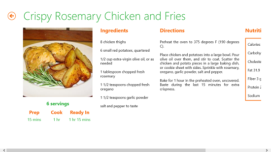 RecipeBook is a free recipe book app for Windows 8 and 8.1 to add recipes and view them. You can add recipes from different URLs into the app, and keep your favorite recipes there. The app supports adding recipes from AllRecipes.com, Epicurious.com, Bonappetit.com, Bigoven.com and Foodnetwork.com. You can choose from a large database of recipes that you can look up and then make a collection inside the RecipeBook app.