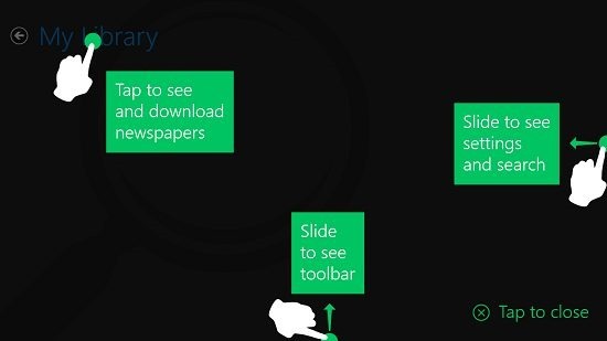 The above screenshot shows the app’s reader interface which is presented to you once you have clicked on a downloaded magazine’s tile. You can zoom in to read the content by double clicking on the screen or by using the + and – control buttons at the bottom right corner of the screen. The app also has a neat control bar, which fires up from the top of the screen while you are in the magazine reader interface, and this basically gives a preview of the contents of the magazine. You can then click on any of these contents to start reading them.
