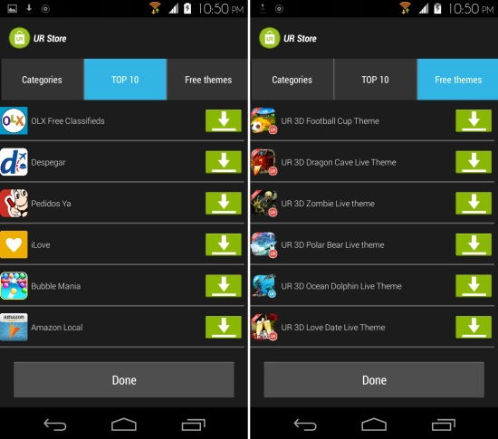 From the UR Store you can download themes for the launcher and apps. The themes are pretty detailed and they provide you with 3D wallpapers, the dock icons, and you also get themed widgets.