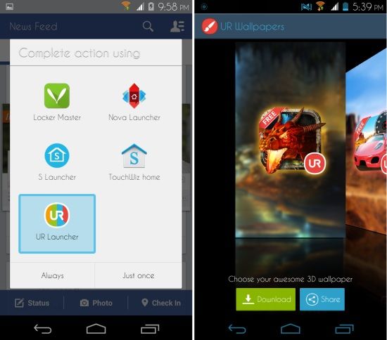 UR Launcher for Android is a nice home screen replacement which is quite customizable. The themes and 3D wallpapers which comes with this app are good. The 3D wallpapers did not slow down my device which is good thing. If you want to customize your phone with easem then try out UR Launcher for Android.