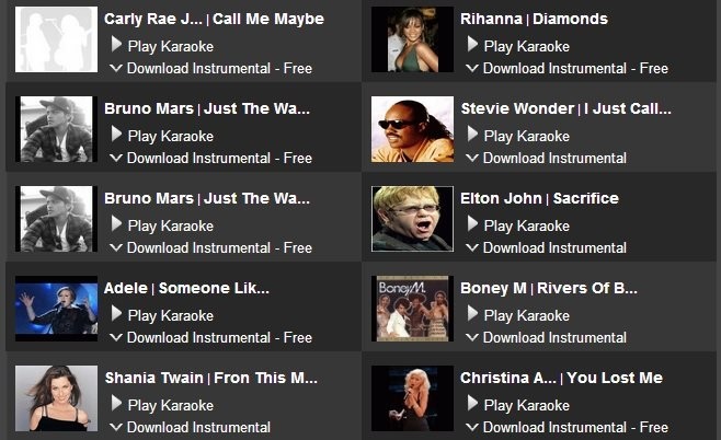 Karaoke-4-free is another website where you can find a lot of Karaoke videos. The website has a large gallery of karaoke and instrumental videos (instrumental videos have only music and no voice of the singer). You can download these videos on to your system or choose to watch and sing online. The website allows you the options of playing a song with the singer’s voice or just play the instrumental. You can also record your song after you create a free account. There are other features like unlimited storage space, playlists, but they have been reserved for the paid version.