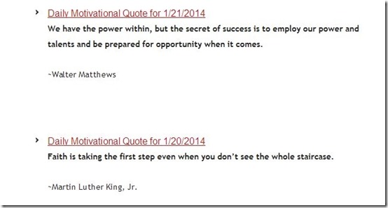 Fourth website to receive daily motivational quotes is My Daily Insights. The website holds a very rich repository of motivational quotes. You have to subscribe to this website by entering your name and email id. It is just a one step procedure and hardly takes any time. Once you have subscribed to receive daily quotes, the website will send you one of them everyday. Just read them and feel motivated. It is a very straightforward website and contains only motivational quotes. There are no poems, stories, new, or tips that you can receive.
