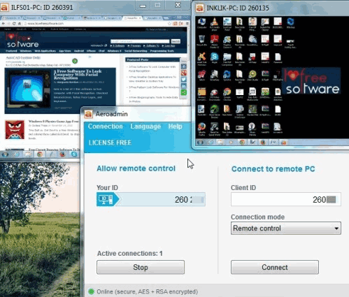 Aeroadmin is another very useful and portable software to remotely access any PC. There are two unique features of this software: enable View only option and create parallel connections (simultaneously). So, whether you have to help your friend to sort out some problem on his/her PC or you want to see activities happening on remote PC, this is a pretty good software.