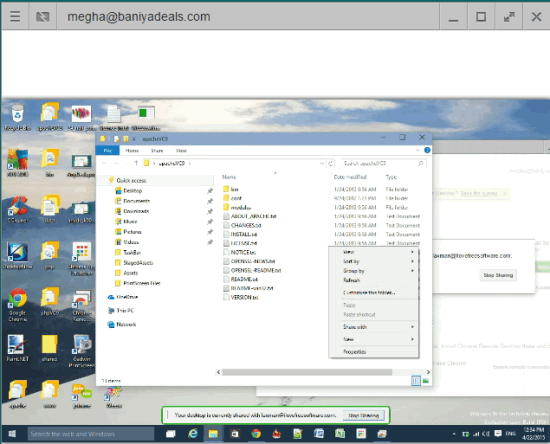 This is a Google Chrome app that lets you access any remote PC with ease. All you have to do is install this app on both PCs. Remote PC also has to install its desktop client. After this, you can access remote PC by using a special code generated at the remote PC’s end. Instead of just accessing remote PC, you can also share your computer screen with remote PC, but in that case, you also need to install the desktop client of this app.