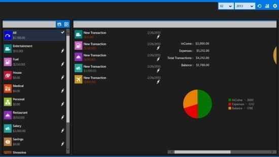 My Wallet Pro is another expense manager for Windows 8; this one lets you breakdown your expenses by months. All you need to do here is add your monthly income and then start adding outgoing expenses and the app show you all you expenses and the amount that is left. All this is shown in a simple and easy to understand interface as shown in the screenshot below.![]()