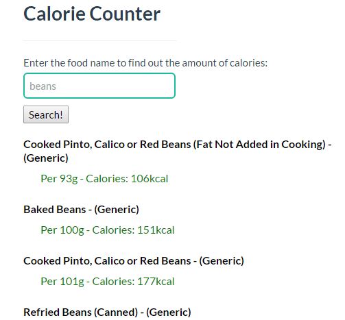 Just type in the food name into the search box and you’re going to be given a list of results down below automatically. Each food will have its caloric value written next to it.