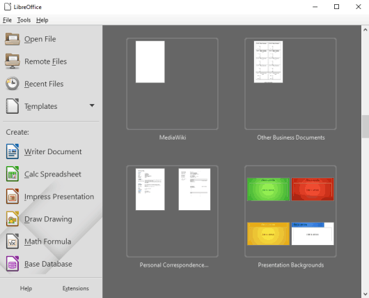 LibreOffice is among the popular Office suites and perhaps the best Microsoft Office alternative for Windows 10. All its tools can be accessed from a single interface. Whether you want to edit a Word, Excel, Publisher, PPT file or create an OpenDocument Format (ODF) file, you can just select the associated option. A file can also be exported as PDF document to PC.