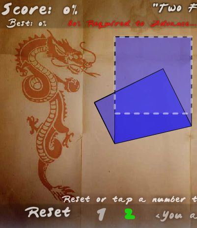 You actually need to fold the paper within the dotted lines as neatly as possible to get high scores and move to the next level. To complete a level you need to finish it in a given number of folds. In my case on the image above that was 2, but that number increases as the game progresses and the shapes become more complex.