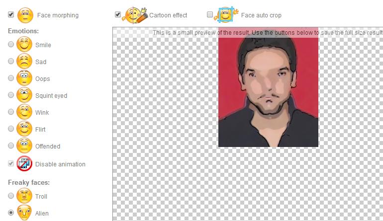 Cartoon Pho.to is another platform that you can use for free photo morphing. You get to use a lot of features on this website. You can upload any photo either from your pc or from Facebook or some other place. Once the photo is uploaded, you can start adding various effects to it. The website has options like Emotions (you can make the person smile, sad, cry) Freaky Faces, Cartoon effects, and more. Apply these hilarious effects, and share photos online with your friends.