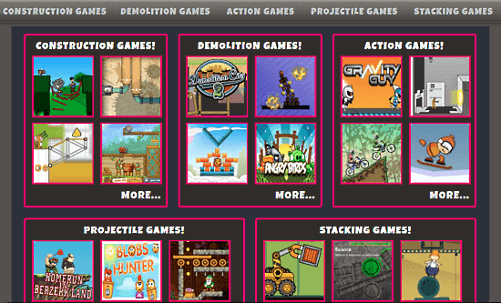 PhysicsGames.com is another free website where you can find hundreds of fun Physics games. The games here are really fun and entertaining. This website gives you various options for the games. Here, you get 5 different categories of games like Projectile Game, Stacking Games, Construction Games, etc. Kids can have fun while playing these games and learn Physics at the same time.