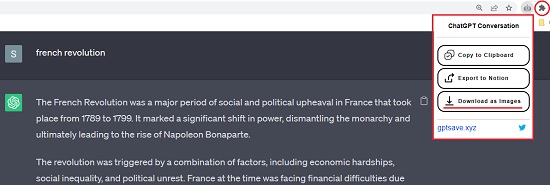 This is yet another Google Chrome Extension that enables you to download your ChatGPT chats as images in the PNG format. You can also use it to export your chats to your Notion workspace.
