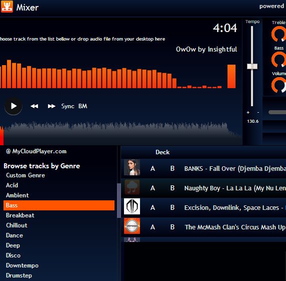 As you can see, there aren’t any turntables in the traditional sense, but instead you get two equalizer spots where songs can be loaded. At the bottom song browser is available where songs from Soundcloud can either be filtered based on genre or you can find what you want using a search tool. Apart from having everything that extensions mentioned above have, My Cloud Mixer also offers waveforms, VU meters, beat detection, spectrum analyzers, filters and more.