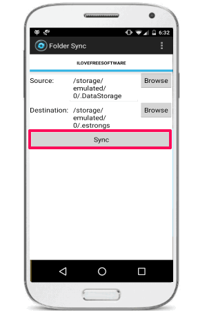 Folder Sync is another free Android app to keep a phone folder in sync with SD card. The app is very simple to use and doesn’t come with many options in it. Just specify the two folders that you want to keep in sync and that’s it. The app will then let you keep the folders in sync. There are no options in the app to specify the sync behavior or sync interval. And you have to sync the folders manually.