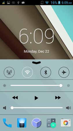 L Locker might even be better than the Lollipop lockscreen. Notice on the image down below that by swiping from all the way at the bottom of the screen, from the arrow that sits there, you can open up quick access toolbar and favorite apps.