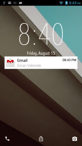 Lock screen shows notifications, that’s one of the bigger improvements that it gets. Secondly as you can see at the bottom of the screen, there are quick access icons for opening up camera and phone calls. Some alternative lock screens for Android have already been offering these features for quite some time, but now they’re gonna be added to Android by default. Design of the lock screen is very modern, with changeable backgrounds. This design is exactly the kind of design that you’re gonna see in the L Android that’s about to be released. So if you want to have the kind of lock screen that Android L will have, this app is your safest bet.