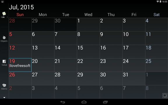 Calendar makes it easy to adds new items to the schedule. Just tap on a date and an empty schedule list will pop-up. Tap “Add” to start adding new appointments. Memos, goals and everything else that the app has to offer can be accessed from the left sidebar.