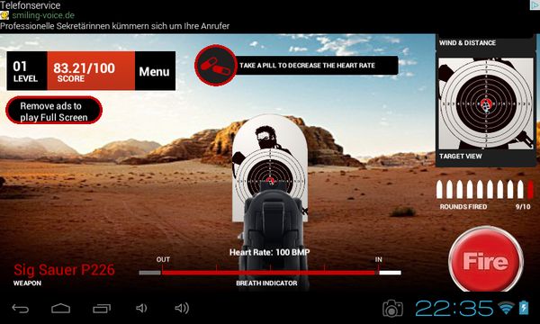 You play the game by first shooting at the target that’s 5 meters away. Once you hit the bullseye with enough rounds at 5m, you can move on to the next distance. Aim by holding down a tap and moving your finger on the screen.
