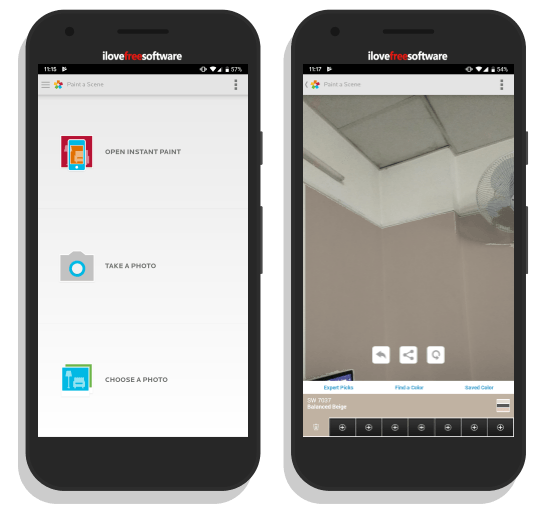 - Open Instant Paint: This options instantly opens the camera with a colors overlay on top. You can simply point the camera to the wall and select a color from the overlay to visualize it.