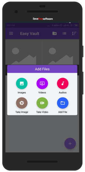 You will see the default folders named Images and Videos to hide your data. You can also create a new folder. If you tap on the (+) icon located bottom right, it shows more options to add files. You can hide audios and other documents from your SD card. The app directly lets you take image and record videos and hide within the app. Besides that, private browsing is also available in this app.
