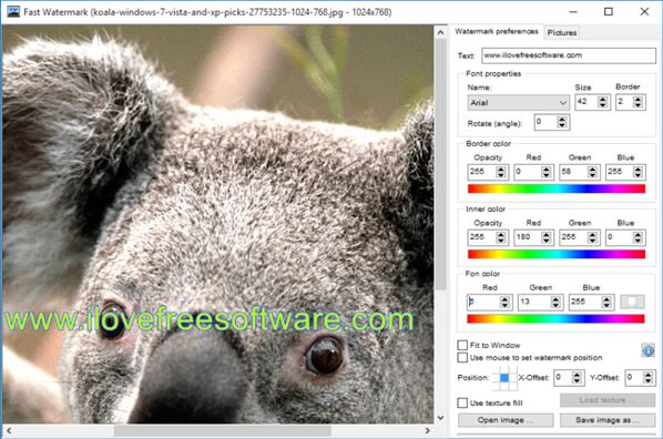 Fast Watermark adds text based watermarks to images. On the image above I’m adding a link back to our website here.