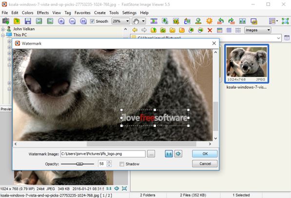 FastStone Image Viewer is another overkill type of watermarking software, just like XnView. It comes with a wide range of functionalities like image conversion, resizing, effects can be applied to images, and more.