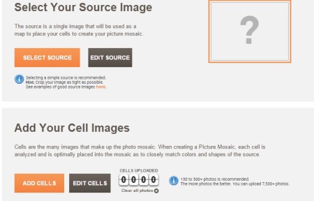 Picture Mosaics is the penultimate platform where you can create photo mosaic online from your favorite Facebook images. This is a website with multiple functions and users are required to create a free account with the website to start creating their photo mosaics. So, the process begins with creating an account ans is followed by three simple steps. First you select an image from Facebook and crop it nicely to fit your frame. After that you can add cells ( small images) to your frame and the website recommends that you add up to 500 images per mosaic to make your mosaics look better. Finally, you can select the size for your mosaic and hit the Create Mosaic option. The final mosaics are saved in your account and can be shared from there. In case you wish to edit your mosaic after it has been created & saved, such option is also available. Check it out from above.