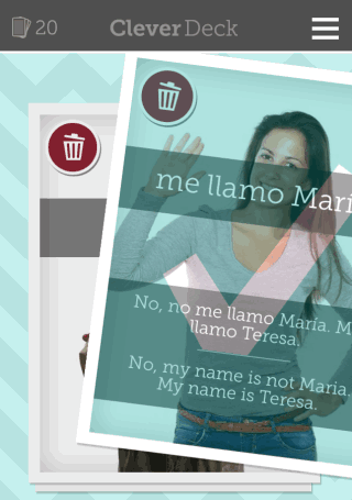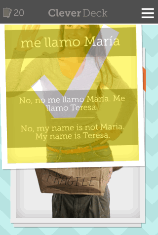 CleverDeck is a good iPhone flashcard app to learn Spanish, French, and Turkish. The app is fun and easy to use. The option to check flashcards on basis of categories and ability to add custom flashcards is awesome. Do give this app a try if you want to learn any of the supported language.