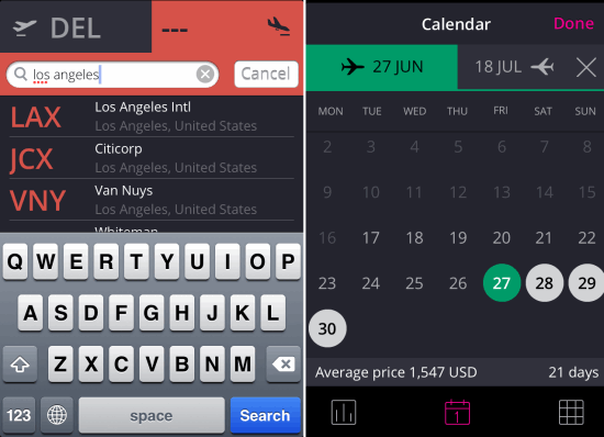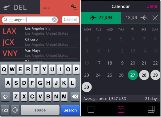 Momondo is a really good iPhone app for finding, comparing cheap flights without even registering with the app. The filters available with the app makes it a lot easier for searching flights and to search only the relevant flights. If you are one of those who travel frequently by flights then do try this app.
