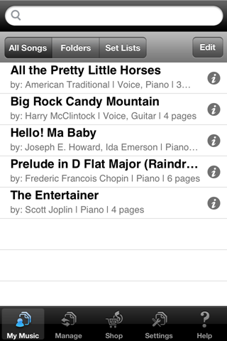 Musicnotes Sheet Music Viewer is a free iPhone client app for Musicnotes which lets you view and manage your Musicnotes sheet music from anywhere.
