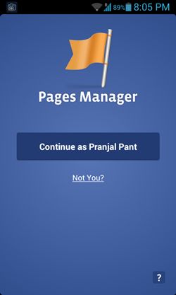 - If you already have the Facebook app or the Facebook’s Messenger app, and you are logged into any of those, when you open the Pages manager, you will be asked to continue as the user id that you have saved for those accounts. However, if you want to manage pages that you have created from a different user id, then you can also enter the credentials of the other user id as well. See the screenshot below for the Login page of Facebook Pages Manager.