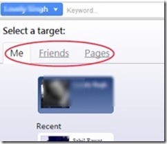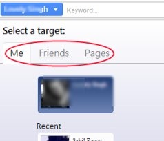 Just select a target to search for older posts. Options are available as: Me (yourself), Friends, and Pages (you liked).