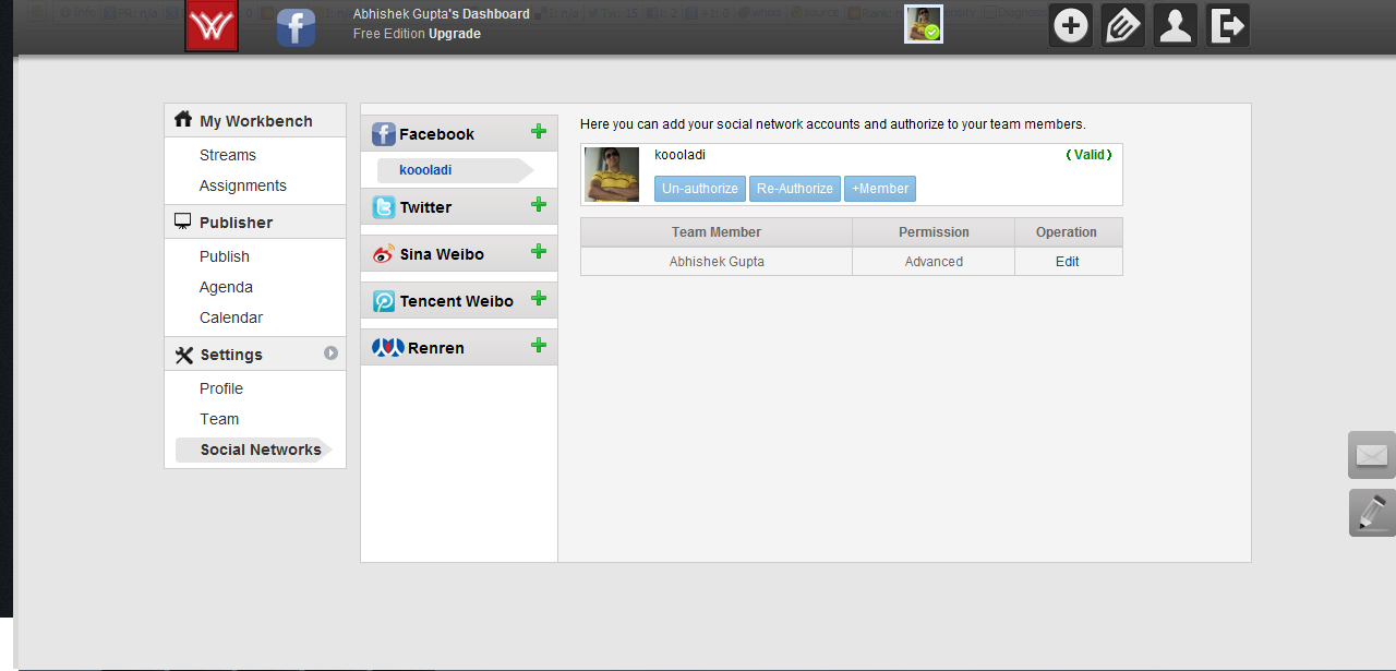 The settings tabs lists down your profiles, team members, options to change profile information such as passwords and more. Under the free version you can manage up to 5 online profiles. For example if you manage your Facebook profile even the pages linked to your profile would be counted. There are other limitations as well such as, if you have more than 5 profiles on different social media websites then you cannot manage all of them. Worphy currently supports Facebook, Twitter, Sina Weibo, Renren, and Tencent Weibo. Moreover, with the free version only one person per account would be allowed to manage and collaborate the profiles within the registered account. Also the help provided to you is through the Forum where in case you wish to use the email support you have to upgrade to any of the paid plans.