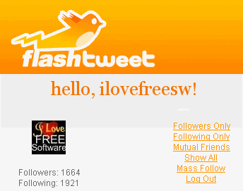 Flash Tweet is a nice free tool to mass follow and unfollow Twitter followers. Here are basic functionalities provided by this free tool: