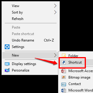 Step 1: Access Windows 10 Desktop context menu, go to New menu, and click Shortcut option. Doing this will open the Create Shortcut wizard window.