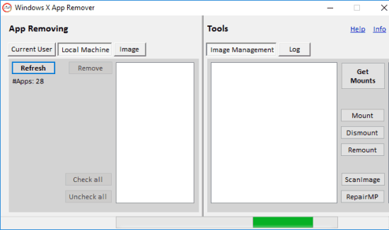 This is indeed a useful software to easily uninstall multiple built-in apps from Windows 10. You have two options to choose from: Current User and Local Machine. Use any option as per your need.