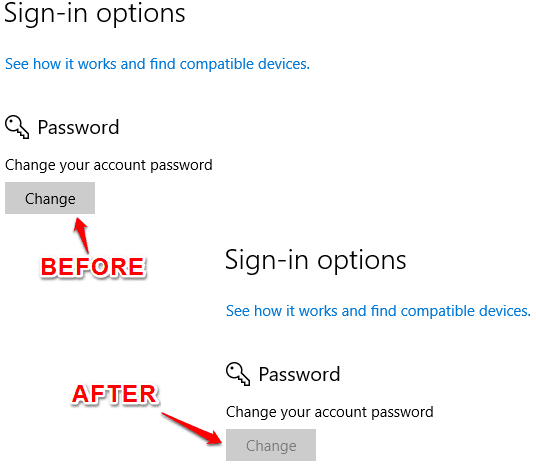 Do note that for applying this trick, you must be signed in to your administration account. Also, this trick works only when you want to disable password change for a standard user account. If you will try to use it on the administrative account, then it won’t work.