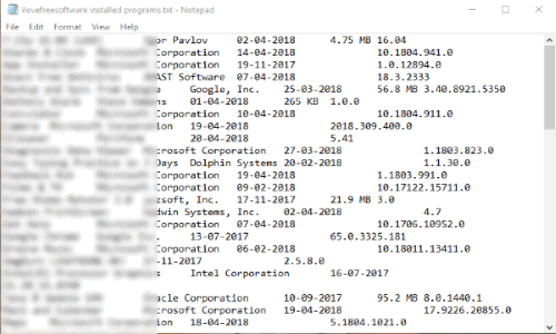 To save the list of installed programs to PC, I am covering two methods here: PowerShell and a free software. Both the methods are pretty simple. See the screenshot below which shows the list of installed programs saved to PC as TXT file.