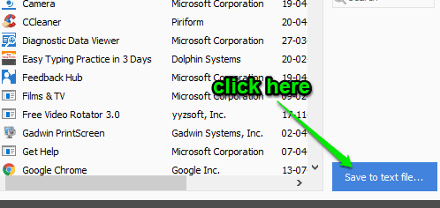 Step 3: Now the list of installed programs will be visible to you. Finally, you can click on “Save to text file…” button. See the screenshot below.
