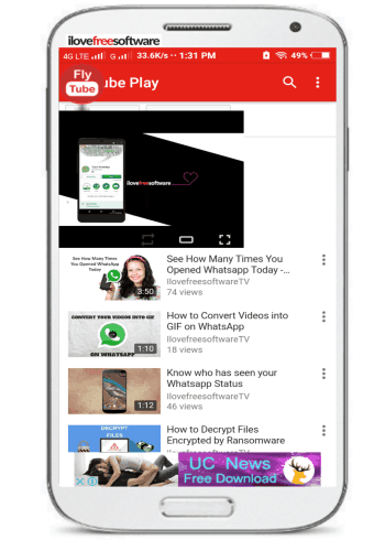 The screenshot below displays the floating YouTube player which was instantly popped up by the app after I chose to play a video. FlyTube basically renders the YouTube mobile interface which makes it feel like using YouTube itself. However, it shows annoying ads in between, so, I will suggest you, to play the YouTube videos on top of others apps by sharing it to FlyTube from official YouTube app or YouTube Go app.