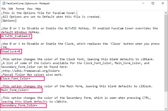 If you don’t like the color and controls of the form, you can customize it accordingly. To do that, right-click on the form and select “Create INI” option. This option creates a “FaceCamCover_Options.ini” file in the same directory where “FaceCamCover.exe” is located. You can open this file in the Notepad and change the parameters to enable/disable various options of the FaceCamCover software.