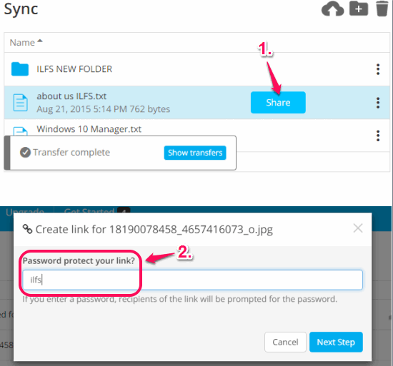 For every single file, you can also generate a sharing link along with password protection. People who will have the shared link and password can download your file without creating any account. However, you have the full right to remove the shared link whenever you want.