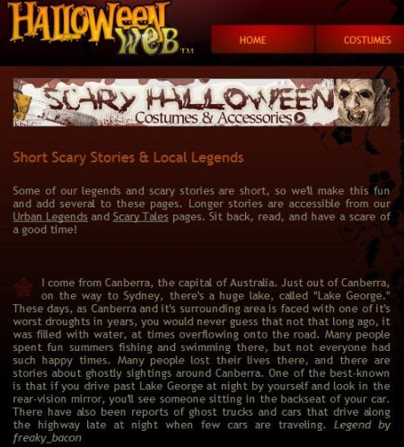 Halloween web includse short scary stories and local legends. The website has a very simple interface with very short scary stories. The story content is not more than one paragraph. The online service is best for the one who like to read very short stories. The website has a full black-colored background with a smart divider in between all the Halloween stories. Just scroll down on the webpage and read different stories in one go.