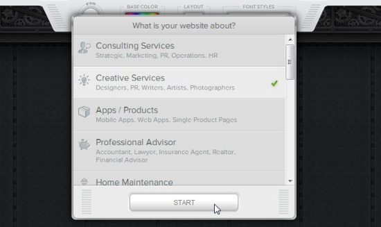 Once you tell Breezi what your business is about, you can press the “Start” button to allow it to generate website templates matching your requirements. Breezi takes a few seconds and generates a set of three unique website templates.