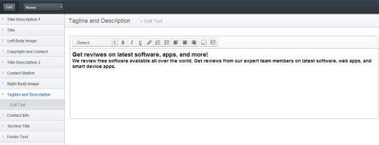 Breezi works like a classic editor in Content Mode and lets you individually edit website contents using a set of powerful editing tools. Here you can modify the website title, title description, body massage, body image, contact info, footer text, and other related contents.